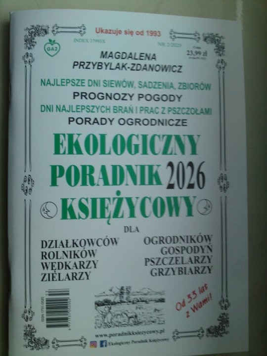 Z uwagi na ilość wyświetleń i dla poszanowania praw autorskich od tego roku nie będę wstawiał zdjęć z kalendarza księżycowego. W ramach rekompensaty dla autorki i jej pracy postanowiłem zareklamować jej dzieło. Koszt to 23,99, każdego stać a naprawdę warto bo jest tam wiele ciekawych porad. @barkas wybacz ale nie mogę wstawiać bo to nieetyczne. Możemy natomiast wymieniać się poradami powiedzmy pod tym zdjęciem.